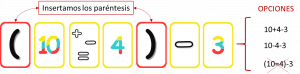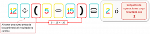 1.- Ejemplo de cómo utilizar los paréntesis para eliminar la opción del “igual” en las cartas multi-operación